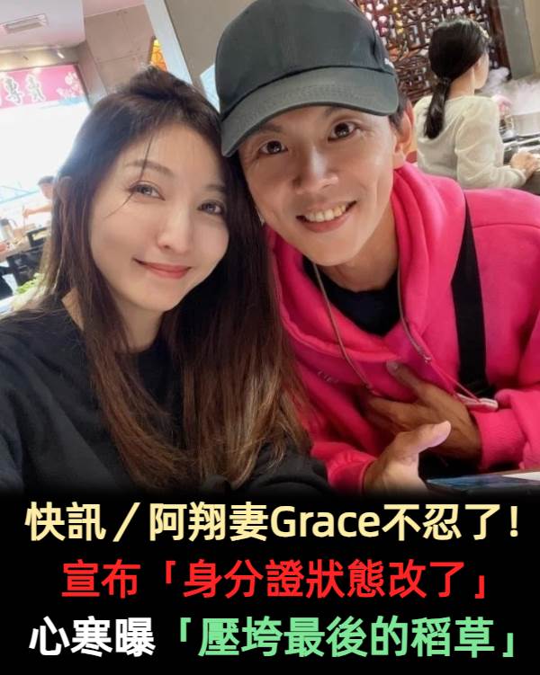 阿翔前幾年跟好搭檔謝昕偷吃,讓外界震驚不已,更心疼他的老婆Grace,只是後來阿翔工作被保住,又跟老婆重修舊好,過得相當甜蜜。只是近日Grace突然鬆口,認了身分證上的狀態改變了,讓不少人看傻。