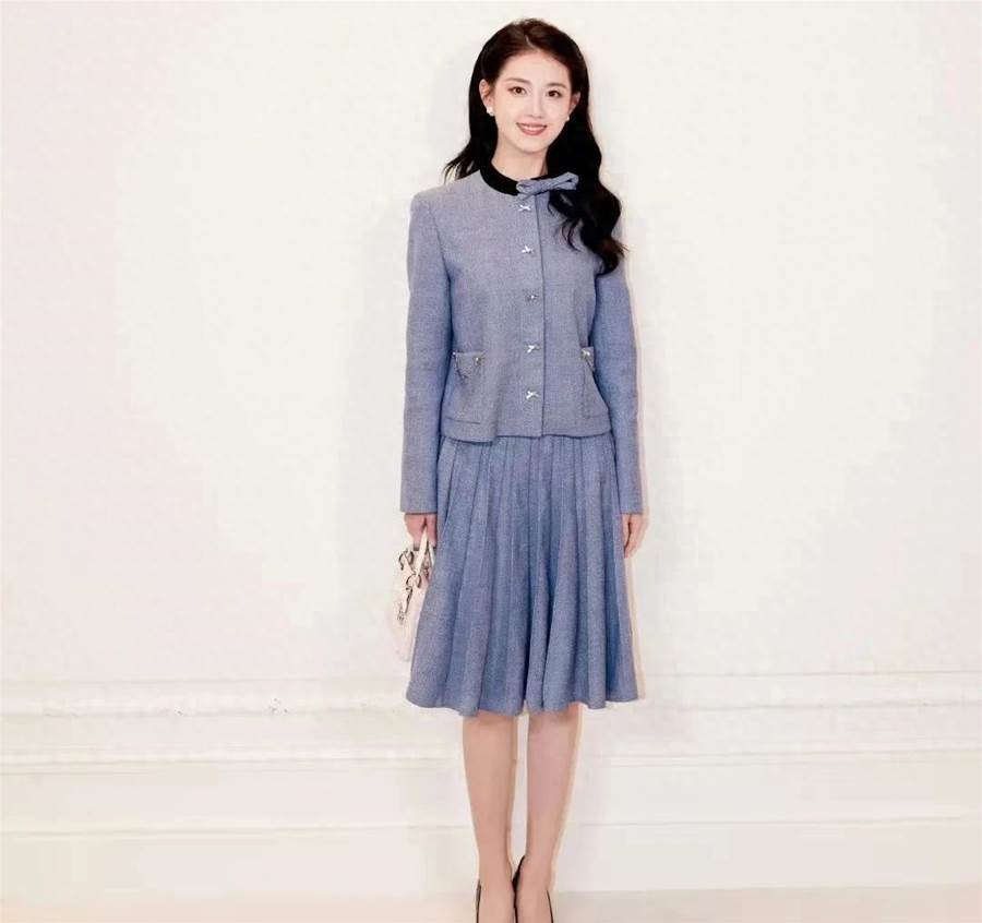 還有短劇品質盛典上,她穿淡藍色修身長裙,搭配銀色項鍊和透視手套,端莊又不失氣場,