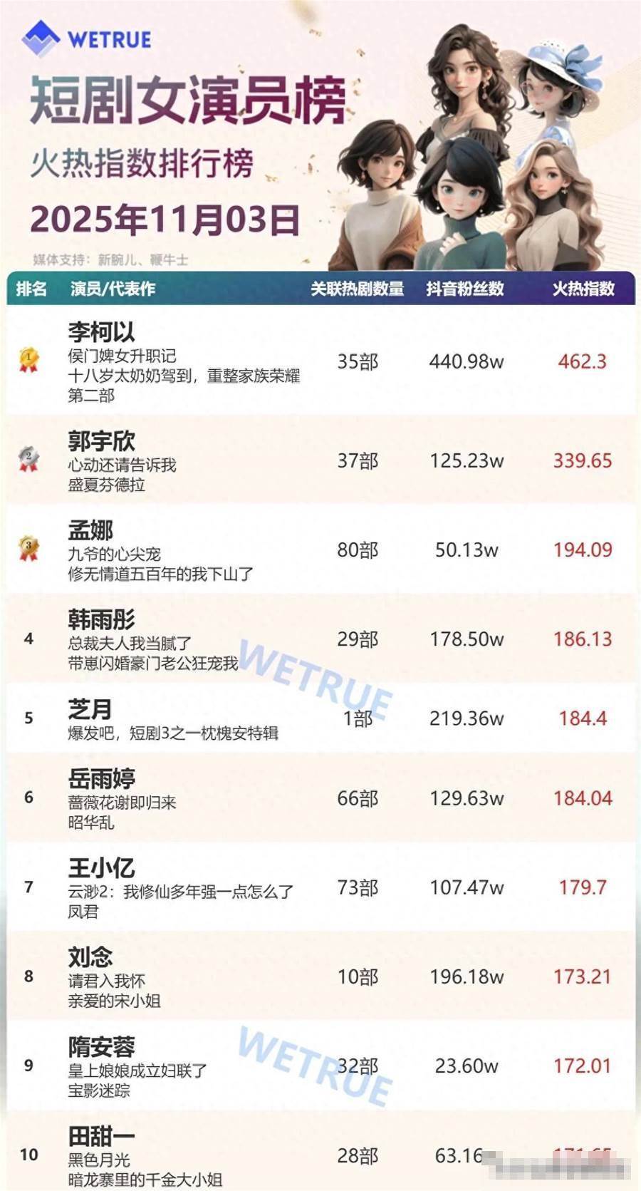 十月已過,十一月來臨,天氣漸冷,然而短劇圈依然熱鬧非凡,短劇女演員的競爭日漸激烈,隨著新劇的播出,短劇女演員的熱度榜再次大洗牌,新老演員輪換交替,好不熱鬧!