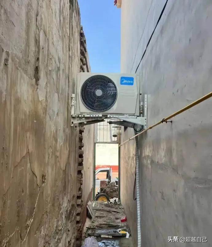 在港澳地區,冷氣機幾乎是家家戶戶的必備家電,但你見過把主機掛在兩面牆之間的「空中夾縫」嗎?近日一張照片在網上瘋傳,只見一臺美的冷氣主機被硬生生架在兩面高牆之間,下方就是狹窄的通道和雜物,讓網友紛紛驚呼:「這是在挑戰物理極限嗎?」