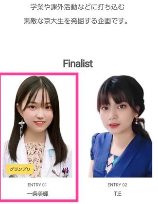 「獲得了初代‘MISS京大’冠軍。我是京都大學醫學部醫學科一年級學生一條美輝。