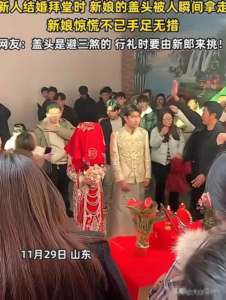 而山東這對新人,恰恰就在蓋頭上出了一個小插曲,給整個婚禮留下了一個小遺憾。