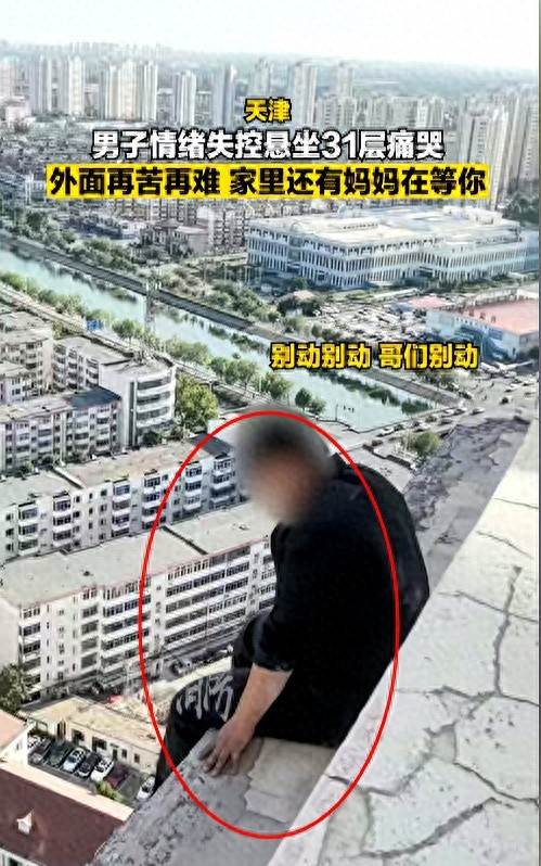 天津男子坐31樓外墻哭著說想媽,警察消防勸不動,一通母親來電全場都愣住了