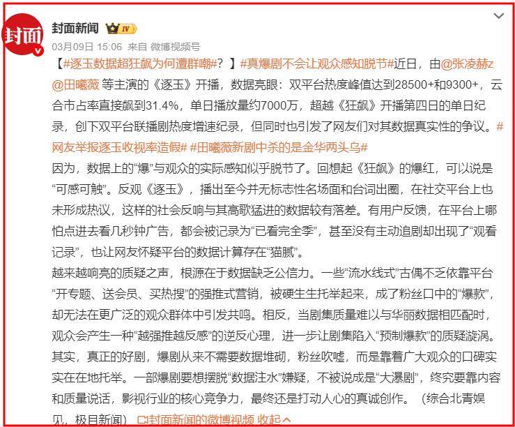 不知道這部劇背後營銷方的那個「鬼才」想出了這樣的一個營銷方法,竟然買熱搜稱《逐玉》的熱度超過了《狂飆》。