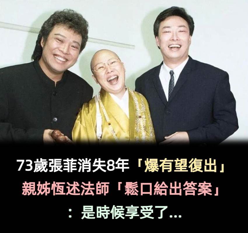 現年73歲的「綜藝天王」張菲,出道至今已超過40個年頭,過往曾憑藉節目《龍兄虎弟》、《綜藝大哥大》受到矚目,奠定在主持界的地位。自2018年主持完《綜藝菲常讚》後,便退出演藝圈,至今已8年未有固定節目推出。儘管偶爾出席企業活動擔任主持,但粉絲們對于他重返螢光幕的呼聲從未停歇。如今,張菲的胞姊恆述法師首度鬆口,讓外界看見復出的一線曙光。