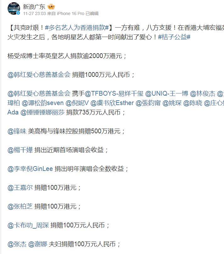 11月底,香港火災牽動全國人民的心,各行各業都在用自己的方式表達慰問。