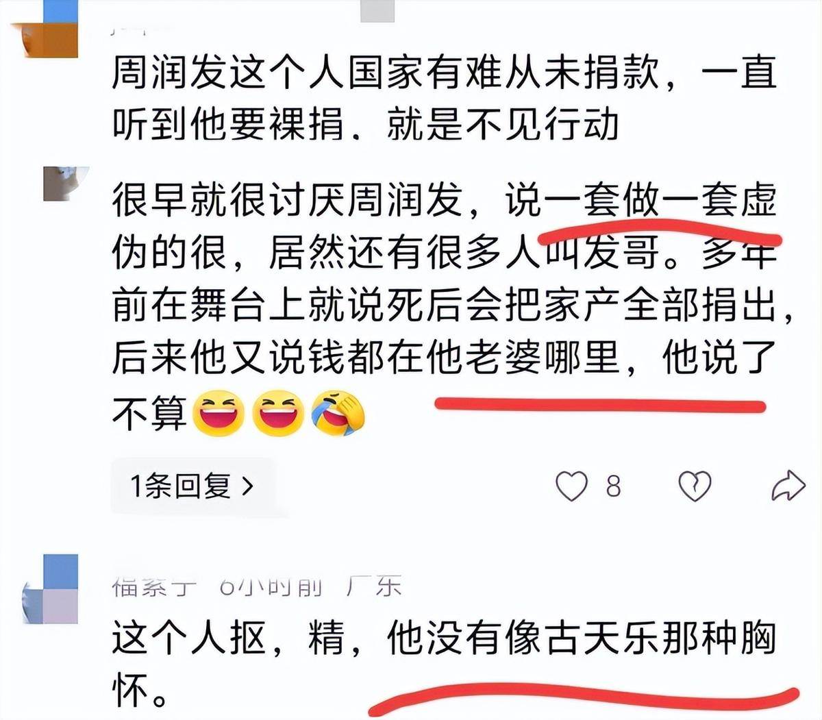 于是有人翻出周潤發曾承諾裸捐56億的事,質疑他 「說一套做一套」,承諾遲遲沒有兌現。