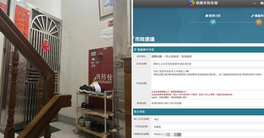 網友:「很難想象在消防栓前面放鞋架的人在想什麼,更難想象不支援檢舉這個的人在想什麼,有時候一份熱心可以拯救無數個生命」