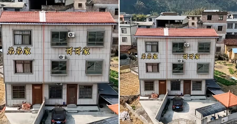 一張照片,道盡了多少家庭的無奈與心酸。近日,一張大陸網友返鄉探親時拍下的照片在台灣瘋傳:一棟外觀幾乎一模一樣的三層自建房,被一道水泥牆從正中間硬生生切開,左邊貼著「弟弟家」、右邊貼著「哥哥家」,兩戶人家大門相對,中間的通道卻被徹底封死,連一輛摩托車都無法通行。這棟被網友戲稱為「最鬥氣房子」的建築,背後藏著一段令人唏噓的兄弟反目故事。