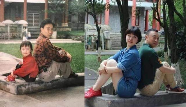 另外一組照片是父女之間的合照,兩人背靠背坐著,在同一個地點,同一個姿勢,同樣的人物,但就是這樣簡簡單單的跨越了20年的一張合照,把整個家庭當中的溫馨展現了出來。
