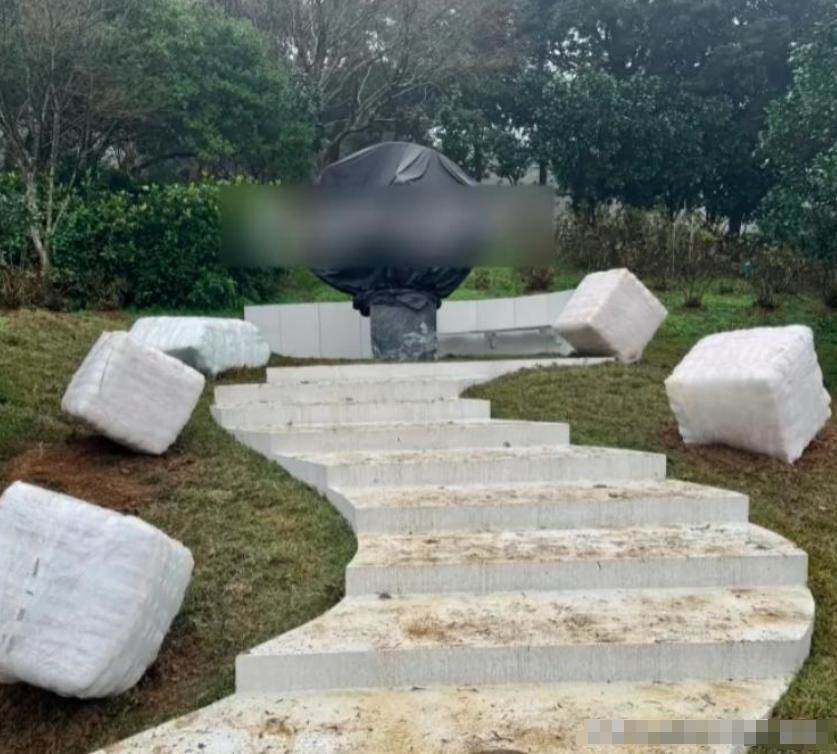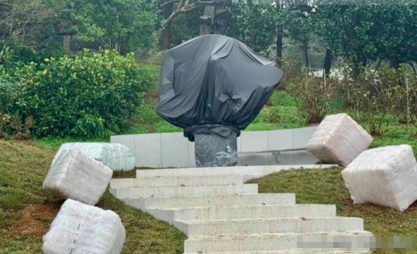 根據臺媒曝光的照片來看,大S雕像雖然已經完工落地了,但整體是被一大塊黑色的塑料布給罩住了,