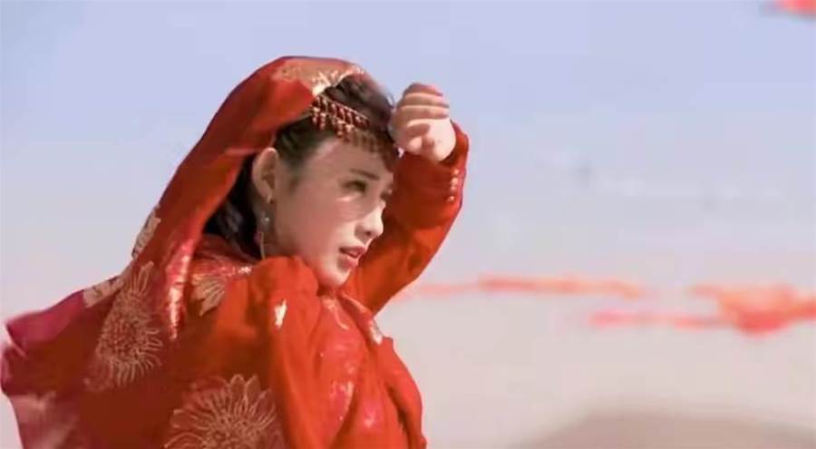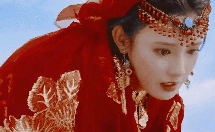 沒有經歷過愛恨情仇的她。眼中有光,快樂的猶如戈壁上的小狐狸。跟這一身明豔的紅最搭!後面發現愛人是自己仇人,眼中的恨更是真真切切的刺痛了所有的觀眾!