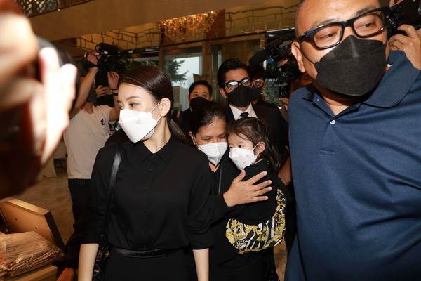 郭富城當日也帶著妻子方媛、兩個女兒抵達殯儀館,當時現場一片混亂,他兩度轉身保護妻兒,女兒則由助理抱進館內,面對外界關心,他透露和「梁伯」關係很好,每逢佳節都會去對方家裡吃飯慶祝,不捨表示:「每一次看見她爸爸的時候,都是一個很親切、很和藹、很溫暖的笑容去面對我們,今天他的離開,我覺得作為後輩都希望在這一刻裡去對他致敬。」
