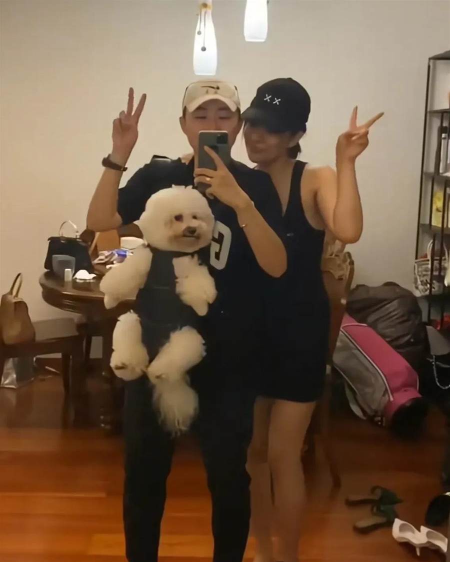 女友顏值出眾,身材性感,葉海洋身高1米7多,女友甚至比葉海洋還高,妥妥的超模郎才女貌啊,兩人一起養了狗狗,對著鏡頭開心比耶,肉眼可見的寵溺恩愛。