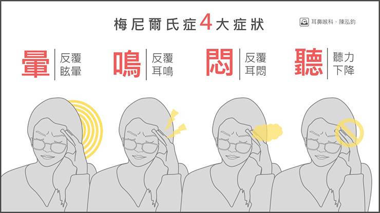 醫生進一步說明,導致暈眩的原因有3種,包含內耳不平衡、腦中風和自律神經失調,其中最常見的內耳不平衡是「梅尼爾氏癥」,是由不知名原因引起的內耳淋巴液水腫,進而導致聽力出現障礙、耳脹等情況,一發作會持續數小時之久。