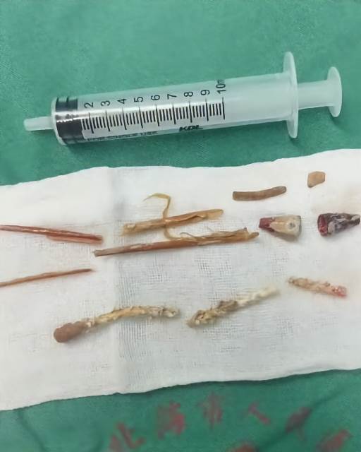 該男子因腰部劇痛、發燒等癥狀前往醫院求診。經詳細檢查,醫生診斷其患有腎結石與腎臟膿腫,但更深層的問題隨即浮現——尿道內積聚了大量異物,包括圓筒狀、筆芯狀、竹簽狀等不同形態的物體。患者坦言,這些異物已留在體內長達二十年,多年來雖偶有不適,卻未徹底處理。
