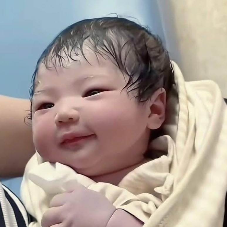鏡頭裡,那個小小的生命如此安靜。他有著濃密的、略顯溼潤的黑髮,軟軟地貼在額前。他的小臉粉嫩,眼睛閉著,長長的睫毛在眼瞼下投出淡淡的陰影。然後,就在父母屏息凝視的瞬間,他的嘴角似乎輕輕向上牽動了一下,勾勒出一個極其微弱、卻無比清晰的、類似微笑的弧度。