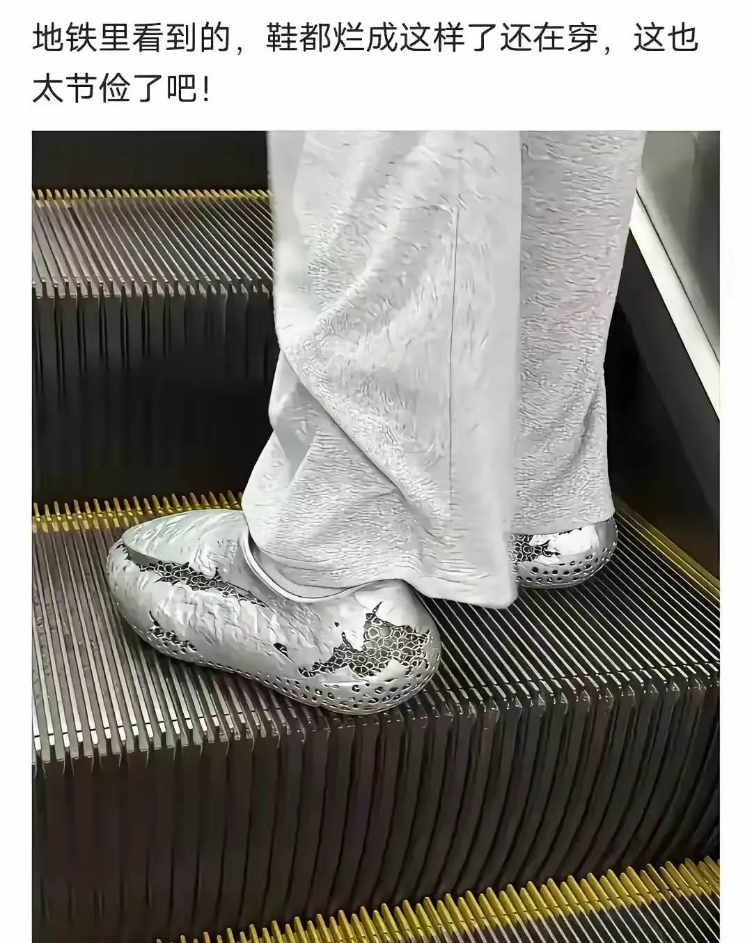 這位網友在帖子中寫道:「捷運里看到的,鞋都爛成這樣了還在穿,這也太節儉了吧!」照片中,可以看到這位女士的鞋子表面有明顯的磨損和破損,但整體看起來依然整潔。這位網友的帖子很快吸引了眾多網友的關注,大家紛紛留言討論。