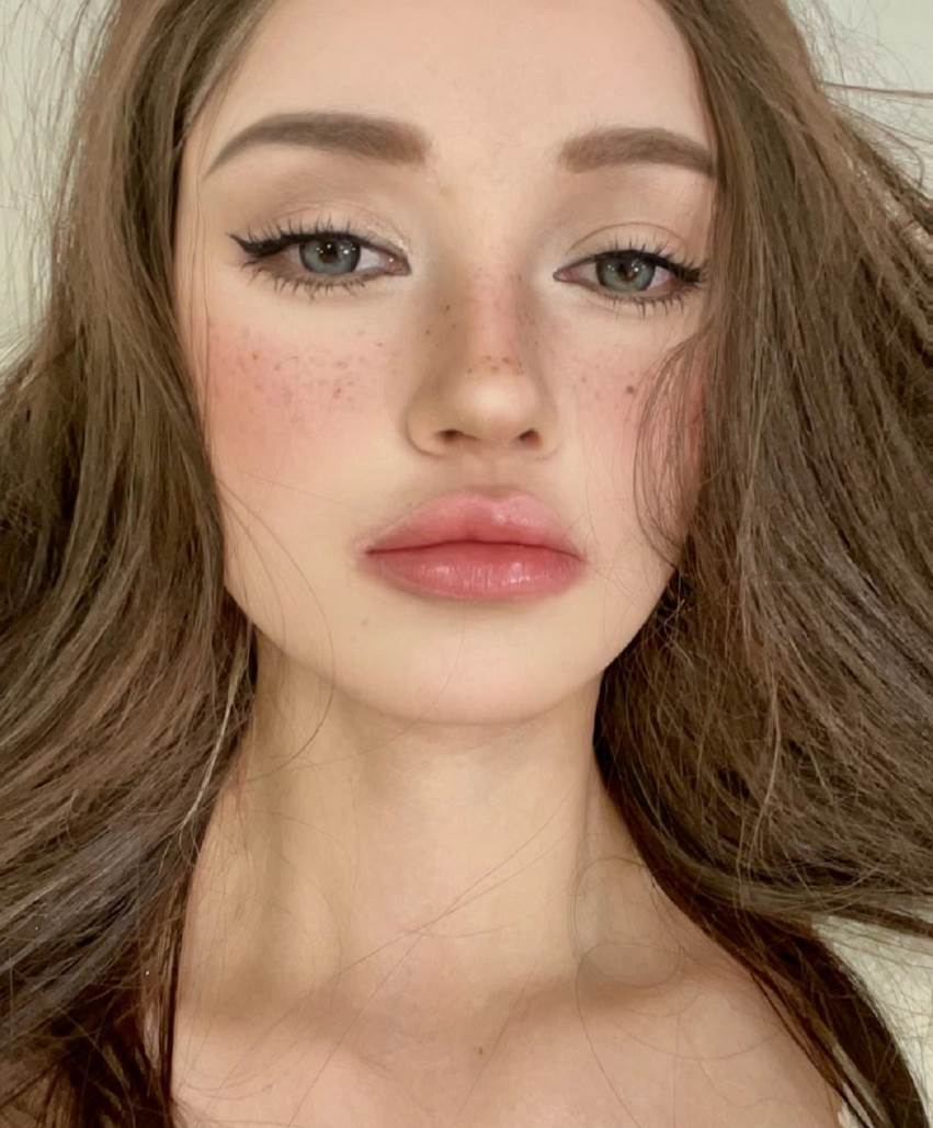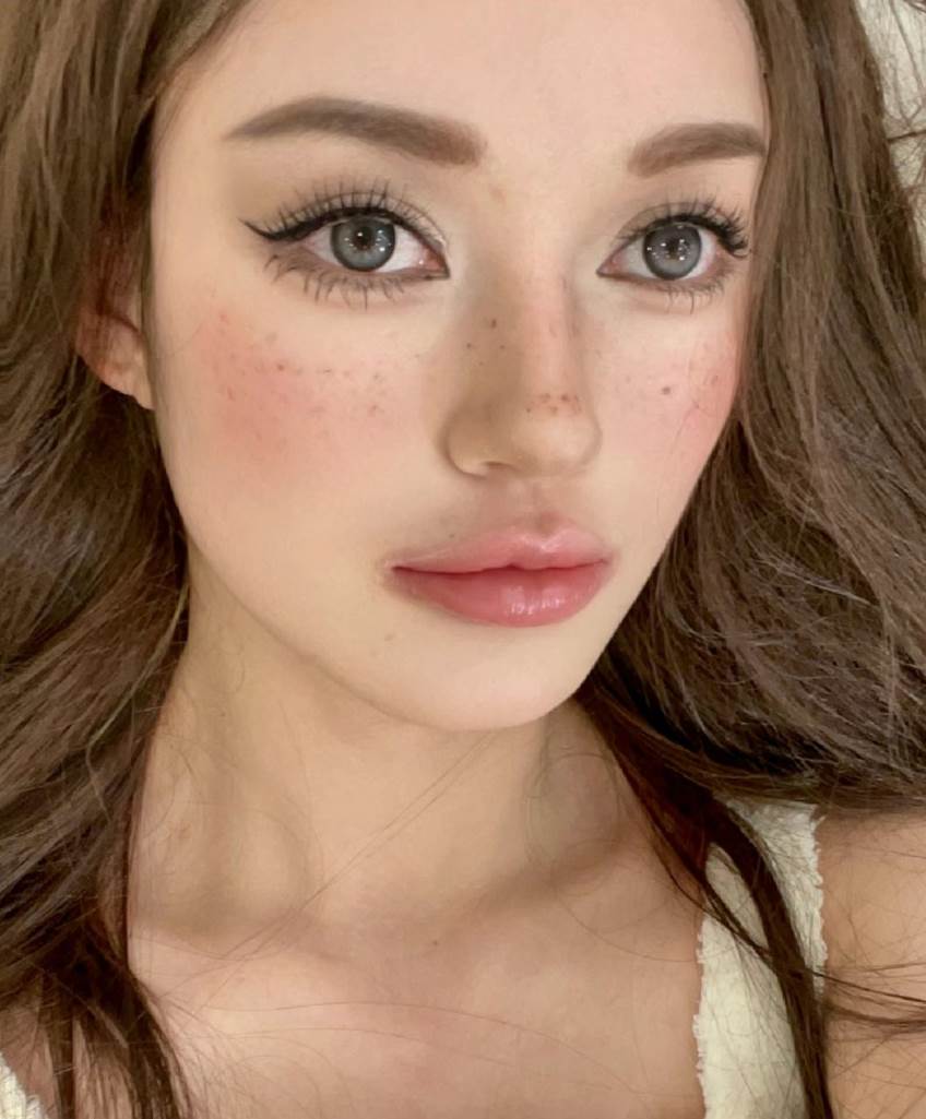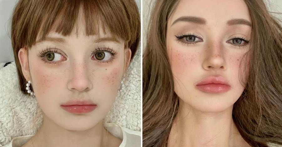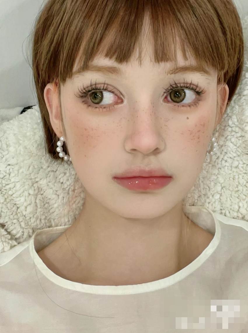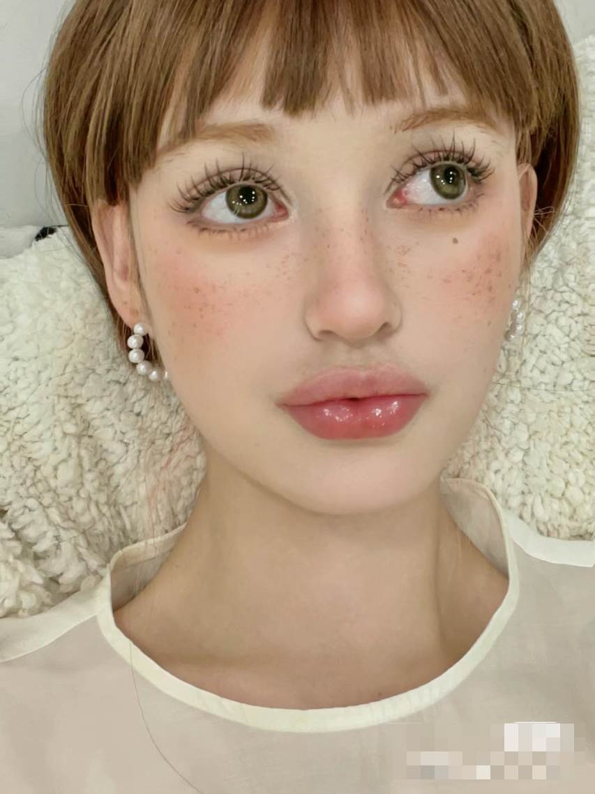 尤其她最厲害的地方就是「全靠化妝把自己畫成外國人」,利用神級的化妝術直接把自己變成超級大正妹,而且可以說是毫無破綻,連近照那雙水汪汪且睫毛根根分明的大眼,一頭短瀏海和臉上的小雀斑,超像雜誌上會出現的外國模特,真的超級美的~