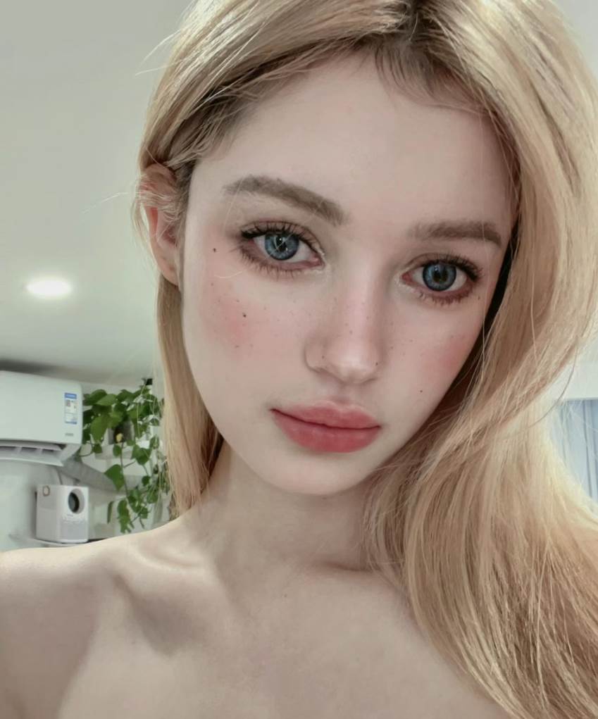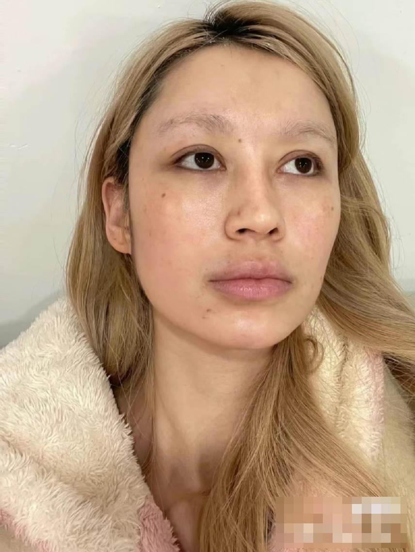只能說真的是換張臉的化妝術,妝容全失後的她,看起來皮膚沒有那麼白皙透亮,加上沒有長睫毛、眼線和美瞳的加持下,看起來較為無神,就是一般東方人會有的面孔,瞬間異國感全失,讓大家超級傻眼:這真的比整形還強欸!