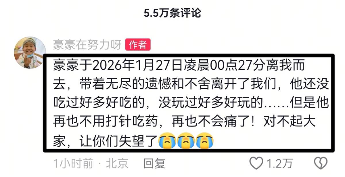 在評論區,網友無不感到痛心,這個孩子給人的印象是非常懂事,堅強,可終究還是沒能扛過去,但長期關注他的網友都表示,這對于小豪豪來說,也是一種解脫,五六年的反覆折磨,誰能受得了?