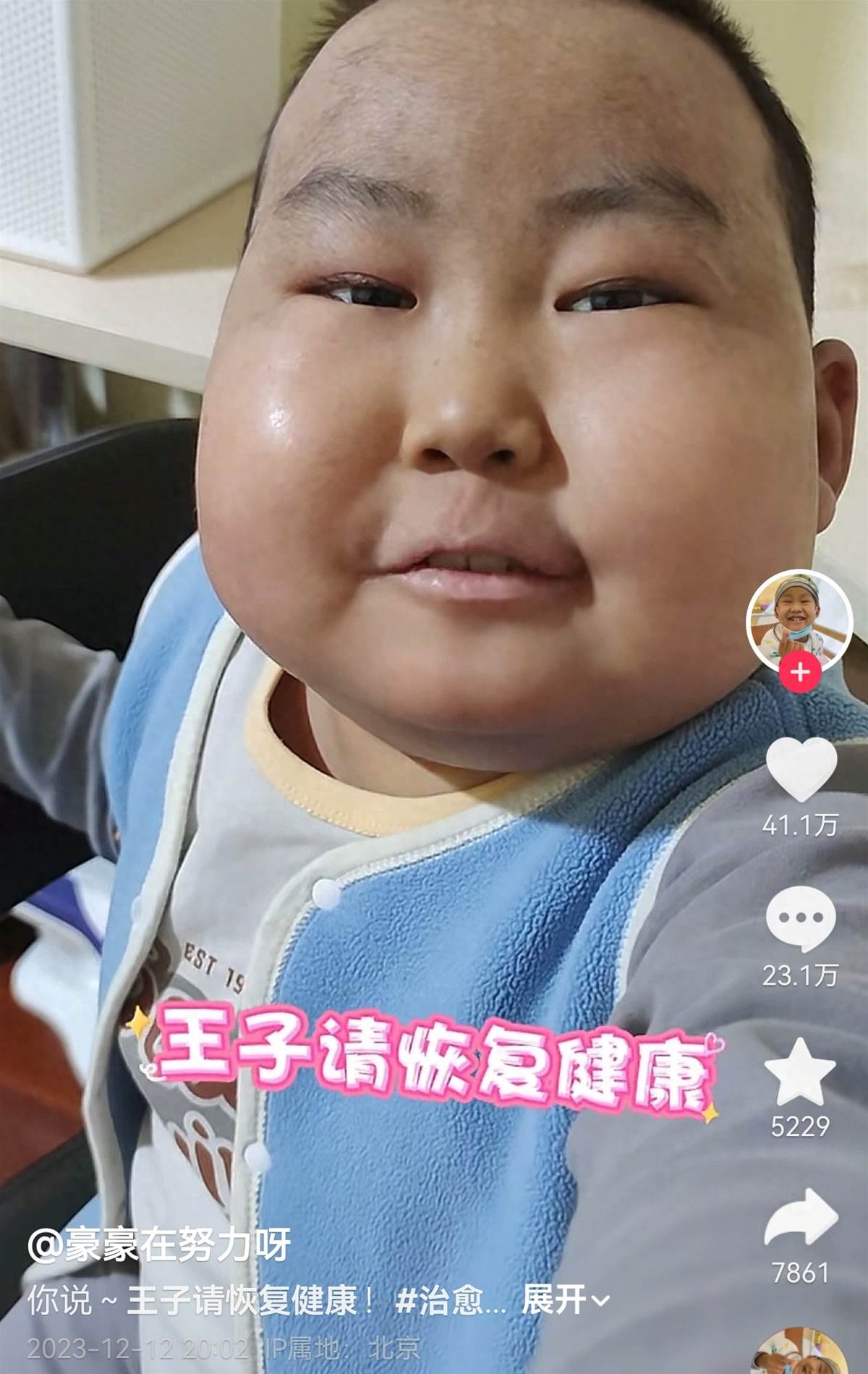從一個可愛帥氣的小男孩變成了臉部嚴重浮腫的重癥患兒,可面對鏡頭,豪豪總是笑容滿面,表現出了超越年齡的堅強和淡定!
