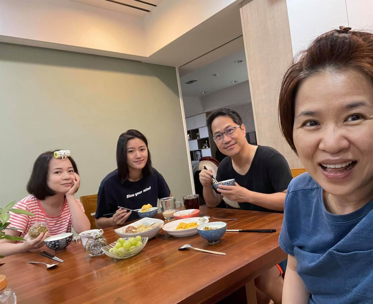 先前她曾在臉書分享:「爆紅眼工作,是的,我累了!」但她告訴自己,要把心安住,得先把家安住,並積極地看待照顧女兒的重擔,「餵飯洗澡這些她們童年要做的事,年過半百後被迫重溫,感受很奇妙,謝謝自己還做得動吧!」