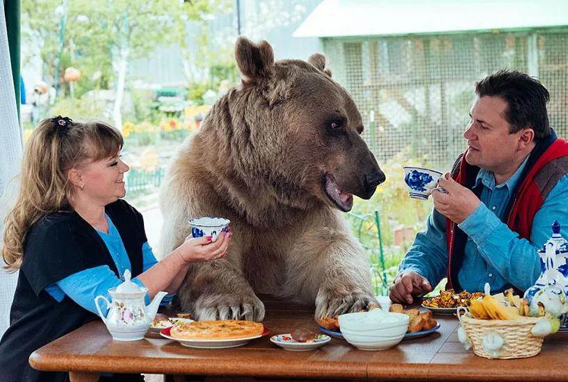 某天兩人互相捅著胳肢窩,嬉笑打鬧地外出散步,突然看到一個獵人拎著一隻小棕熊從林中走了出來。就算是在俄羅斯,這樣的場景也不算常見,夫妻兩人于是好奇地上前搭話。