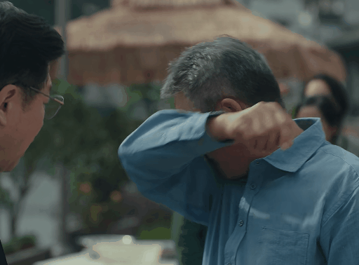 一連串的小動作絲滑流暢,將一個市井小人物面對有錢親家時的窘迫感流露了出來。