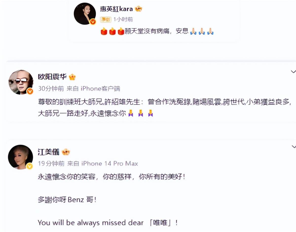 得知許紹雄去世的消息之后,很多藝人乃至網友紛紛表示悼念。