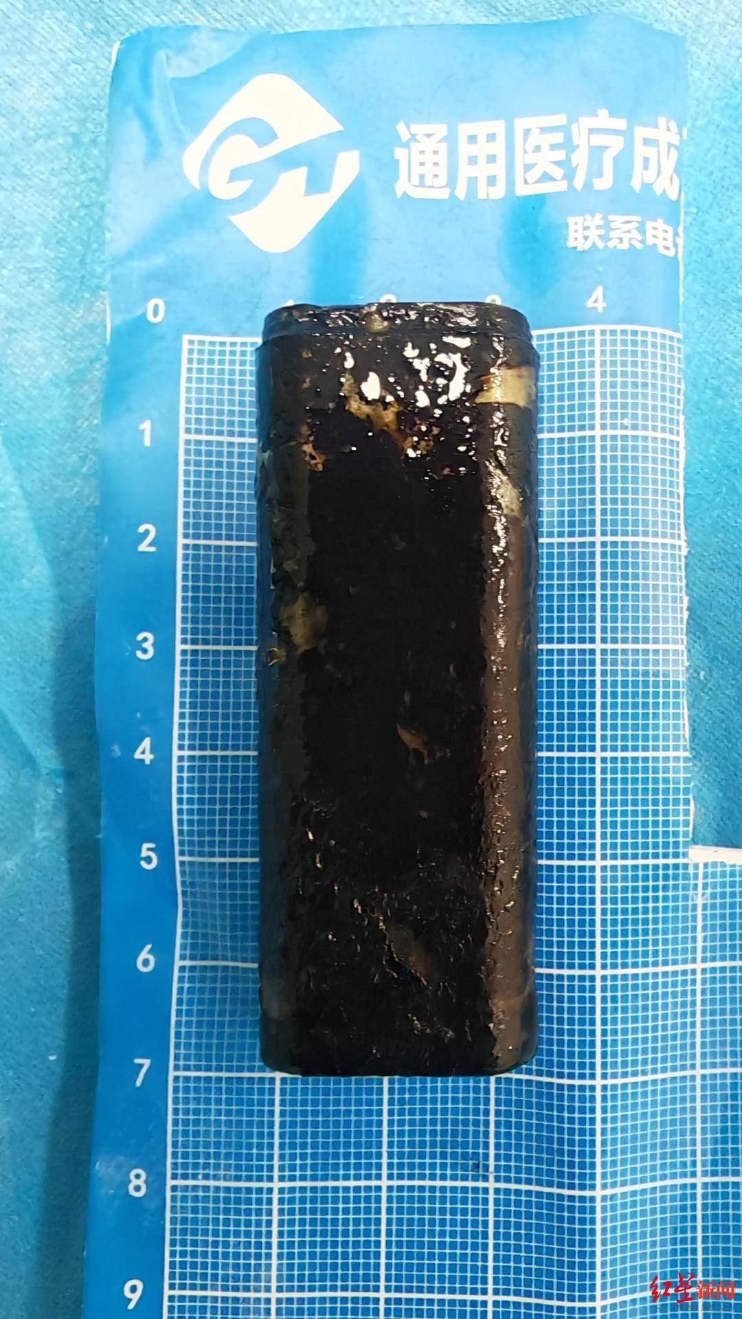 楊波介紹:「我們原計劃在檢查的同時嘗試取出異物,但它表面十分光滑,反覆嘗試異物鉗找不到有效的支點,只能暫緩。」基于異物形態,楊波初步判斷可能是打火機,于是詢問家屬,但家屬聽聞後認為「不可能」,團隊遂決定待患者清醒後再行核實。