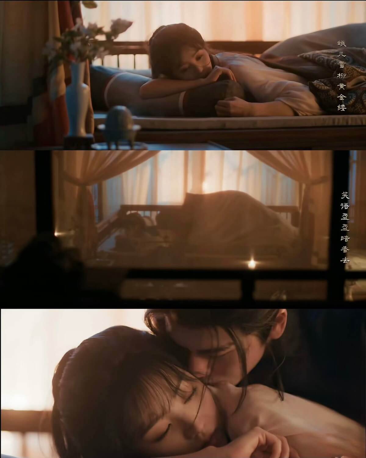 這段謝征、樊長玉圓房之後的片段,包含謝征從被窩鑽出、伏在樊長玉背上親吻其耳垂的過程,以及他低聲回應「藥性還沒解嗎」的喑啞台詞,全都被…刪光光!