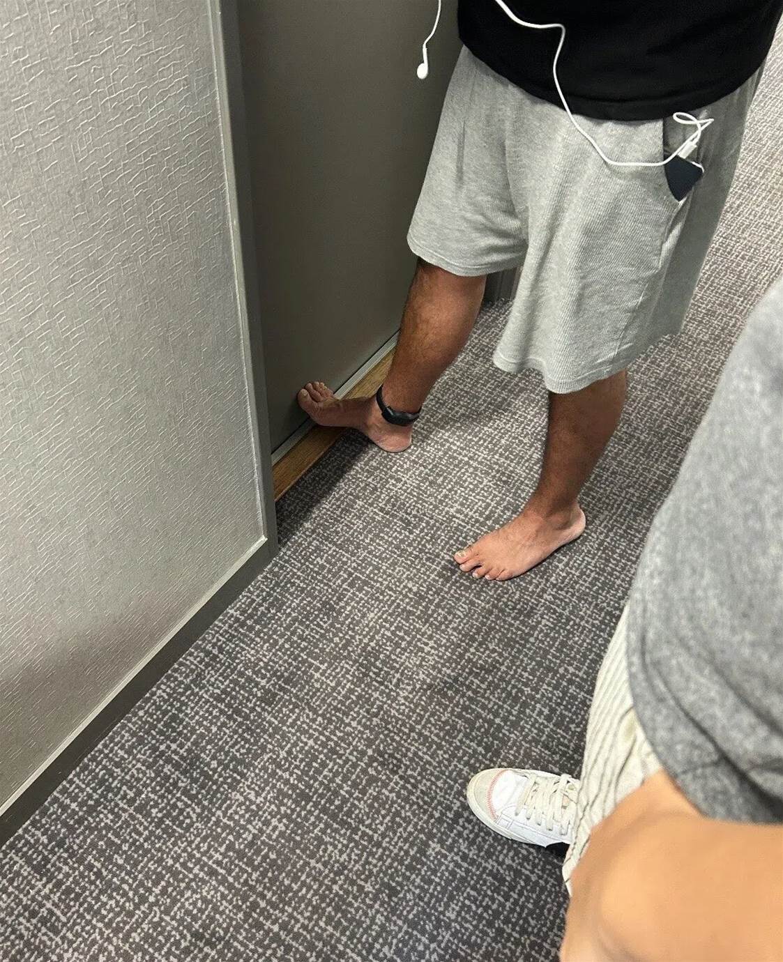 推文網友上傳照片疑惑詢問:「偶然間注意到男鄰居腳上戴的這個是什麼?」 畫面中鄰居腳踝處佩戴著黑色塊狀電子設備。眼尖的網友立即識破真相: