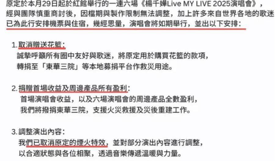 如果突然取消的話,無論對誰都不太負責,所以她的演唱會還是照常舉行,但所賺到的錢她決定全部捐出去。