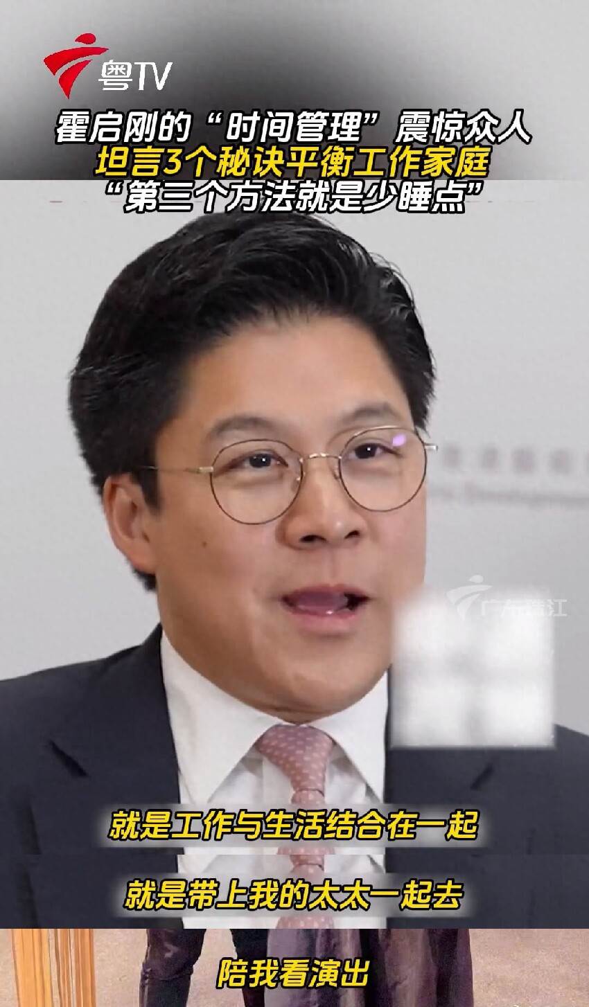 霍啟剛很心疼郭晶晶,說她花了太多時間照顧子女的功課及學習,認為子女的成長只有一次,趁著子女還不抗拒就多陪伴,所以他也選擇犧牲睡眠時間,每天早起看著子女上學,不然等晚上參加活動回來,一整天都看不到他們。