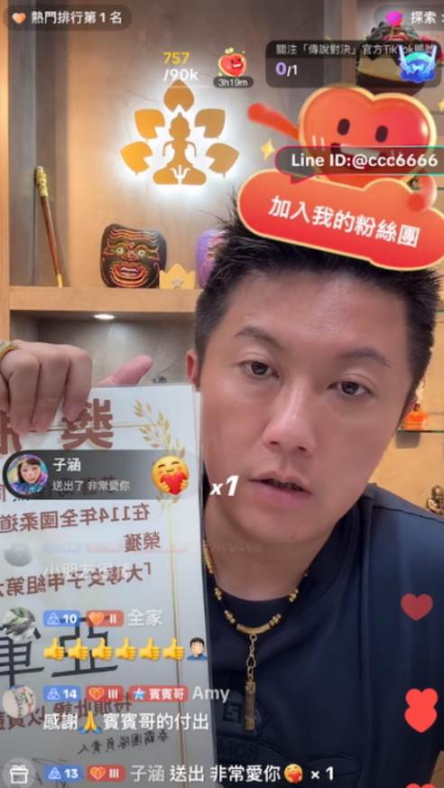 話鋒一轉,賓賓哥自嘲近期壓力大到不敢出門,笑說:「現在講錯一句話就會被無限放大,如果在外面不小心放個屁,都怕被舉報環保局來測空汙,又上新聞。」引發直播間一陣爆笑。他也承諾未來會更加謹言慎行,避免不必要的誤會。