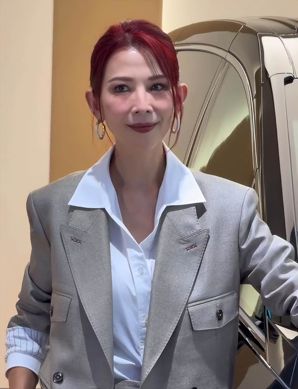 近期,52歲的蔡少芬身穿寬鬆的西服套裝,頂著一頭漂亮的紅髮,出現在廣州車展現場。