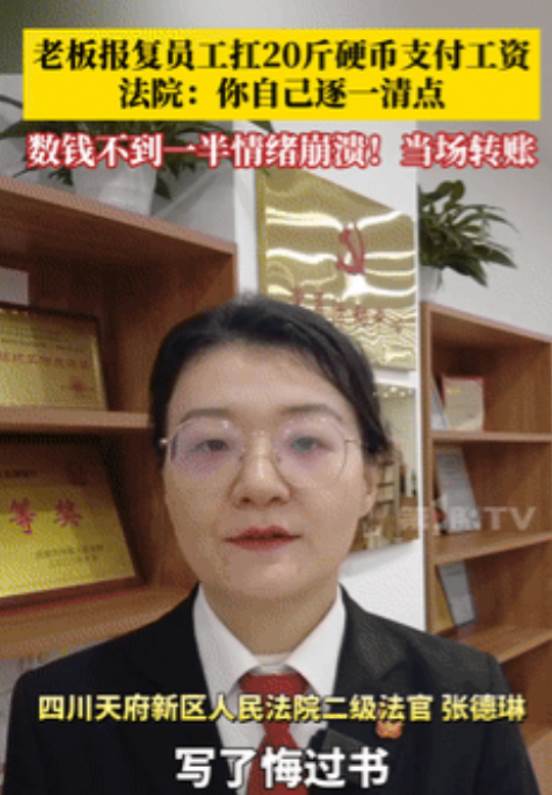 四川成都一名謝姓老闆,因拖欠員工8000元工資被告上法院。敗訴後,他竟扛著重達20斤的1毛硬幣到法院,企圖刁難員工。沒想到法官一句話,直接讓他搬石頭砸自己的腳。