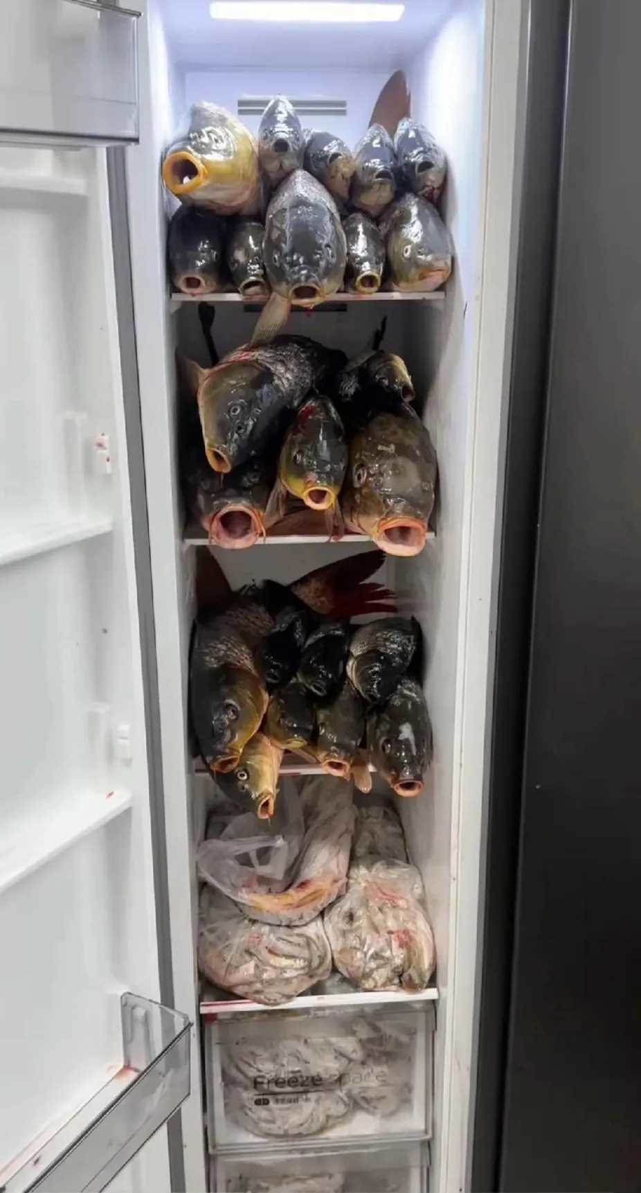 開同事家冰箱門的那一刻,我愣住了——冷藏室裡整整齊齊碼著的不是蔬菜飲料,而是幾十條凍得硬邦邦的魚。鯽魚、鯉魚、草魚……各種品種應有盡有,每條都保持著剛出水時的鮮活姿態,彷彿下一秒就會在冰櫃裡擺動尾巴。