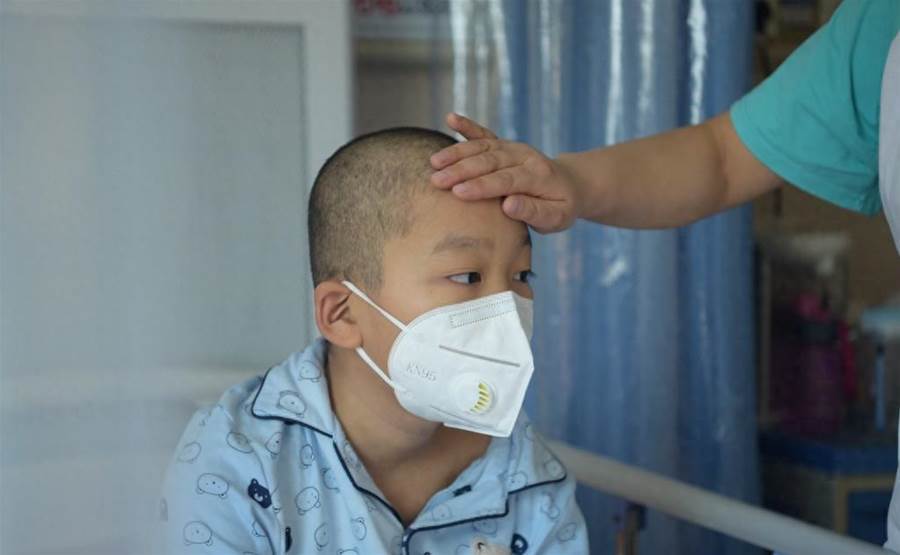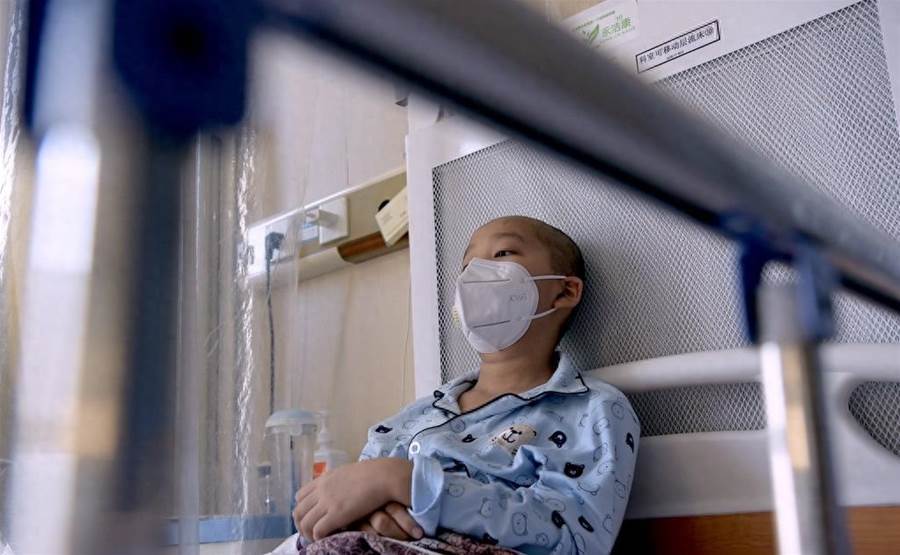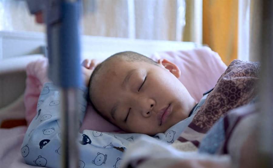 我們商量後就帶著孩子來到了北京兒童醫院,經過一系列的全面檢查,被確診為急性淋巴白血病。但醫生說孩子的情況有80%的治愈率,這是不幸中的萬幸。圖為孩子在醫院治療。