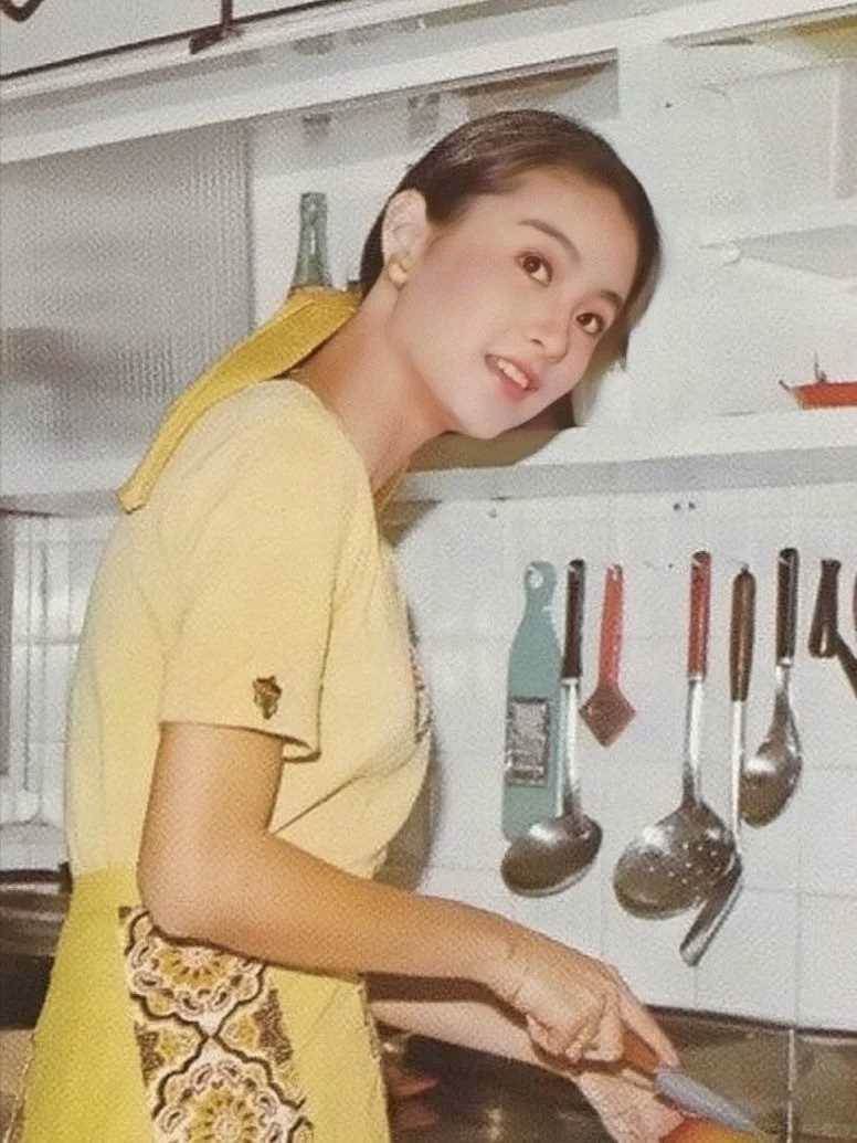 近日,一組林青霞罕見的舊照在網絡上曝光,照片中的她綁著黃色髮帶,身穿樸素的家居服,正在廚房中忙碌地準備美食。