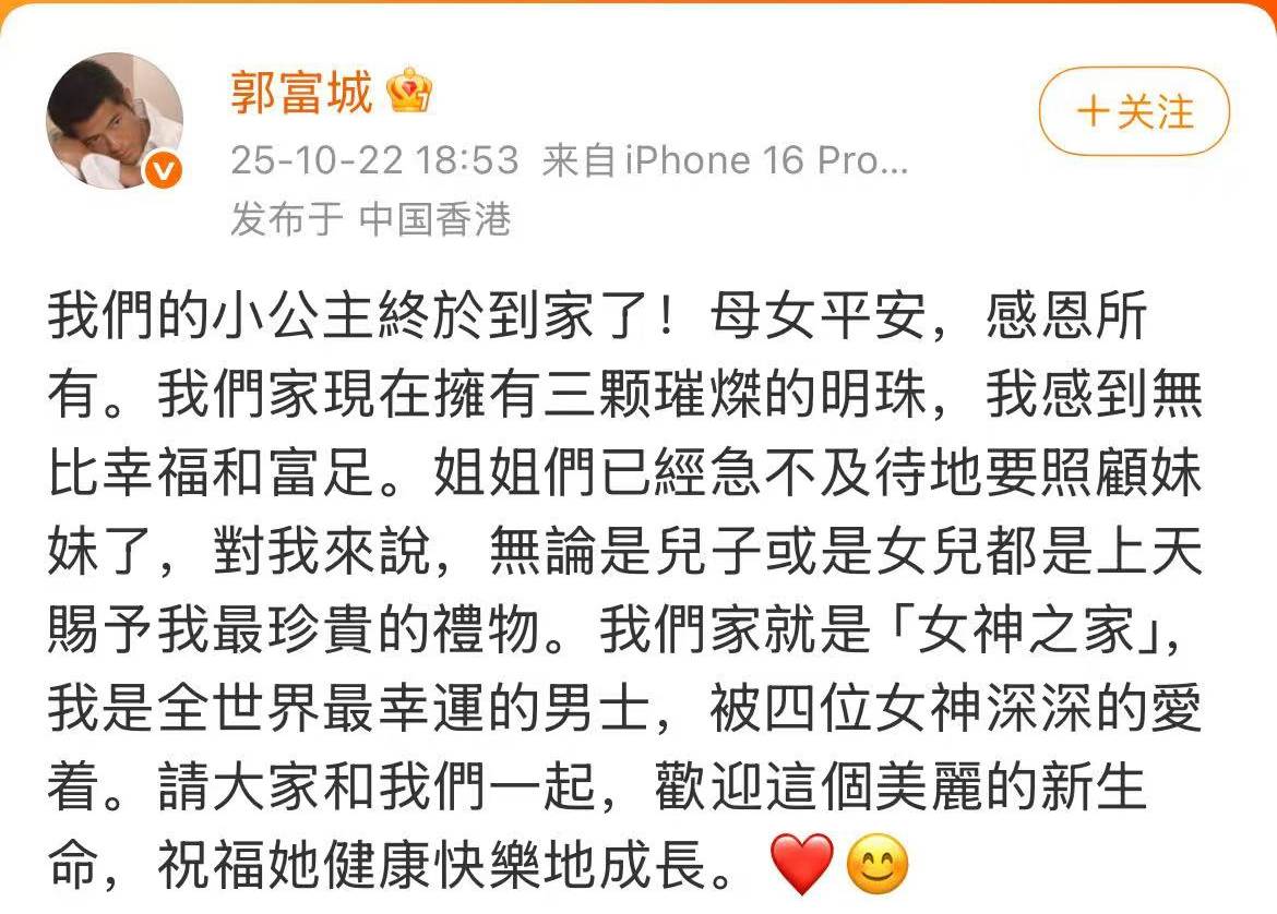也有人認為她太拼命,坐月子期間不應該出門,還由此推斷出郭富城不懂珍惜老婆。
