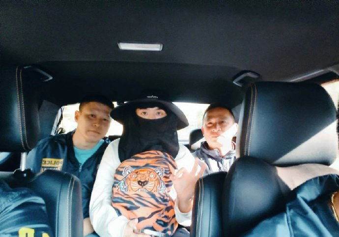 網上流出王星獲救的照片,照片中他戴著黑色頭套,由兩名工作人員陪同登上一輛私家車。車廂內他向鏡頭做出「OK」手勢。