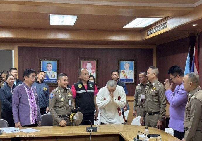 此外,泰國媒體還公開了王星與泰國警方等部門見面時的照片,王星對著他們合十致謝,表達感激之情。