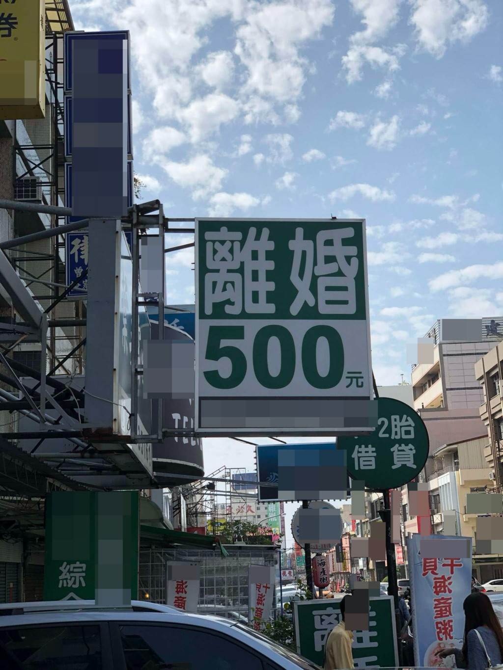 許多在地民眾看到貼文也感到相當有趣,透露這塊招牌存在已久,數十年來價格從未調漲。不過也有經驗者跳出來提醒,招牌標示的500元其實只是協議書費用,若要完成離婚手續,還需支付見證人簽章費用。有網友分享實際經驗指出,由于男女雙方都需要2位見證人,每位見證人收費1000元,實際花費可能高達2000至3000元。