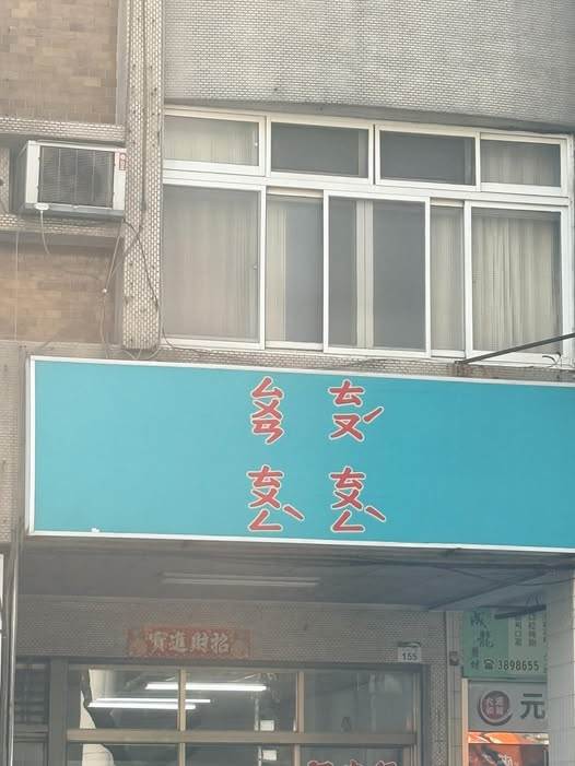 照片中是一家傳統店家的招牌,上面寫著讓人一頭霧水的注音符號。對台灣人來說,這些ㄅ、ㄆ、ㄇ、ㄈ的符號是從小學到大的語言工具,但對外國遊客或剛來台灣的新住民來說,這簡直就像外星文。