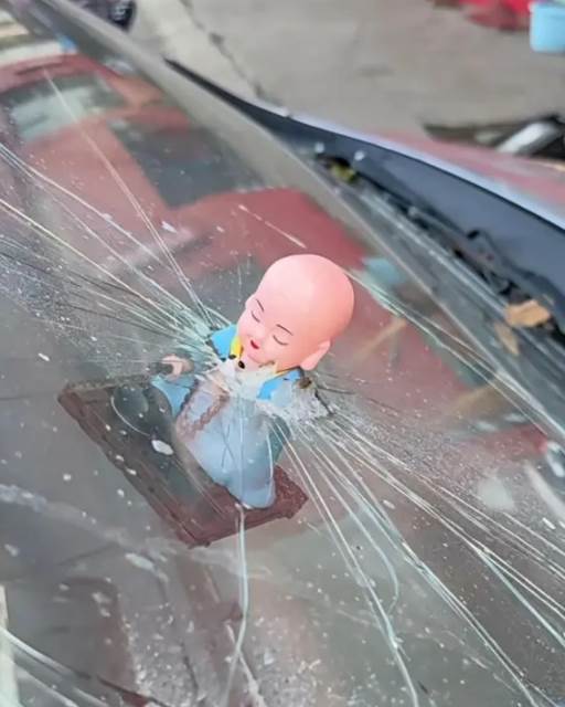 行車安全向來是台灣駕駛最關心的議題,但這幾天一則「小和尚擊穿擋風玻璃」的影片,卻讓全臺網友笑到岔氣。據目擊者描述,當事人當時正行駛在臺南某鄉間道路,只聽「砰」的一聲巨響,擋風玻璃瞬間龜裂,一個粉紅色的物體牢牢嵌在裂痕中心。司機緊急停車檢查,才發現這顆「肇事元兇」,竟是一尊從對向車輛飛來的搖頭小和尚擺件。