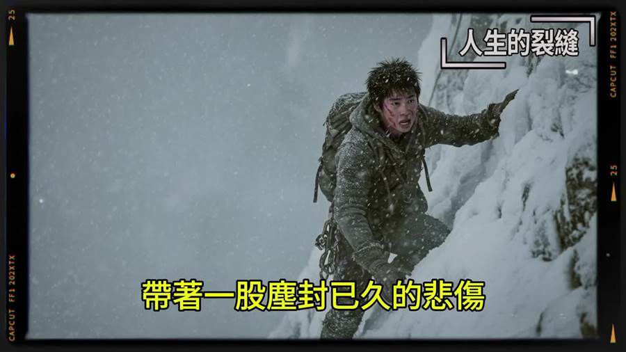 十五年後的夏天,一架無人機在地質測繪過程中意外拍下了一段模糊的影像。畫面中那熟悉又沉寂的藍色,猶如一段被遺忘的詩句,輕輕揭開了一個塵封已久的悲劇。藍色的防風外套靜靜地覆蓋在一個蜷曲的身影上,旁邊是幾個深色的登山揹包——藏在懸崖峭壁的隱蔽平臺上,因為風霜,因為歲月,因為愛,他們凝固在一起。