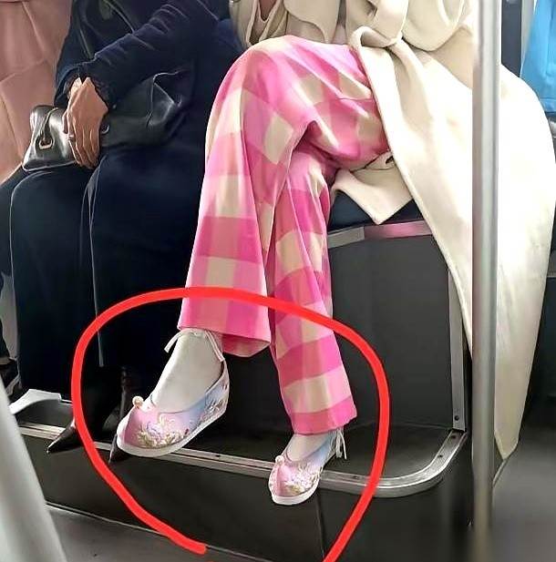 車廂裡剩下一陣竊竊私語。我順著視線看過去——那女生二十出頭,戴耳機,低頭刷手機,腳上一雙最普通的黑色燈芯絨布鞋,鞋頭各縫了一塊白布,針腳細密,像兩片小孝幡。