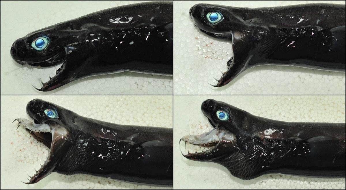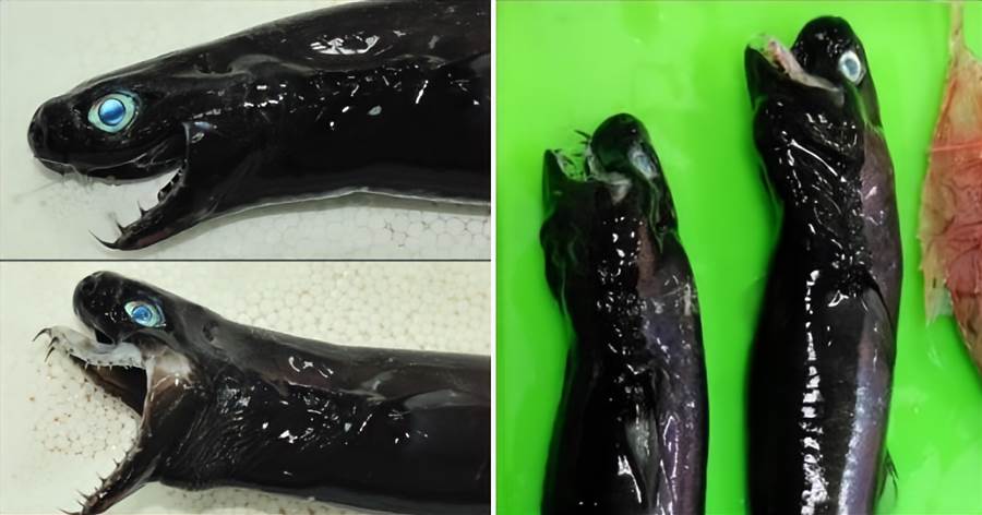 牠全身皮膚是黑色、油亮狀,眼球與瞳孔則呈現淡綠、碧藍的奇異色彩,口部則有宛若毒蛇般的利齒在周邊擴散。此外,當這條怪魚將血盆大口張開到最大時,上顎的牙齦還會直接彈出來,彷彿脫臼般的詭譎樣貌,讓人感覺相當不舒服。